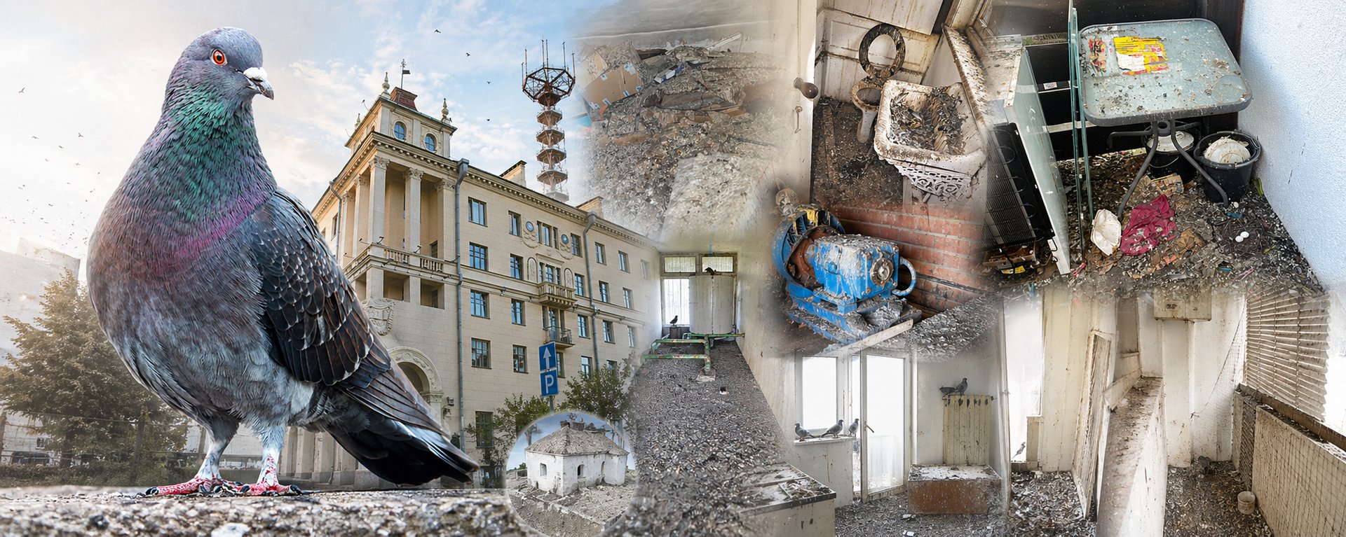 Curage, aspiration des fientes de pigeons, nettoyage hydro-mécanique, décontamination.